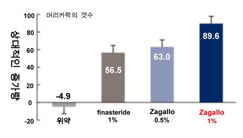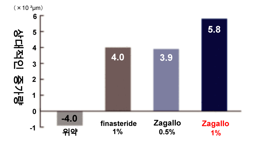 프로페시아 (피나스테라이드) 1mg에 비해 자가로 0.5mg 모발 수가 약 1.6 배 증가하고 있습니다.